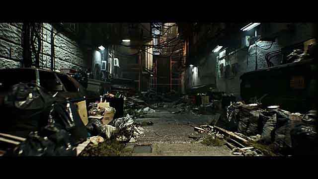The details, and the attention to detail, are rich, with immaculate texturing and intricate, realistic lighting. Rich and muted colors are nicely utilized, with touches of color interspersed amongst black and white, in some cases. The architecture, environments, vehicles, machinery, and sets are appealing, and the camera work and editing flow together nicely. The film makes excellent use of Epic Software's Unreal Engine remarkable real-time rendering capabilities.